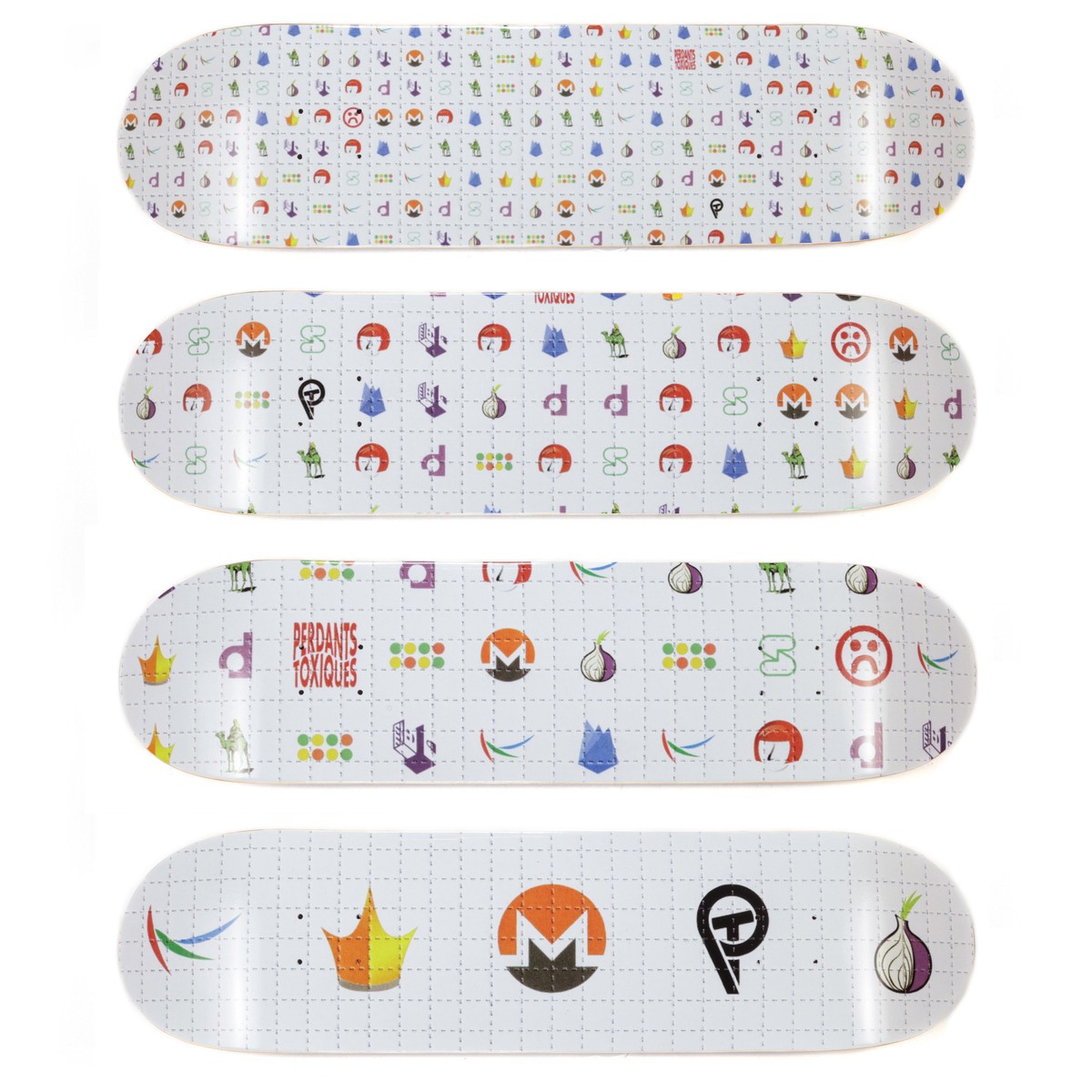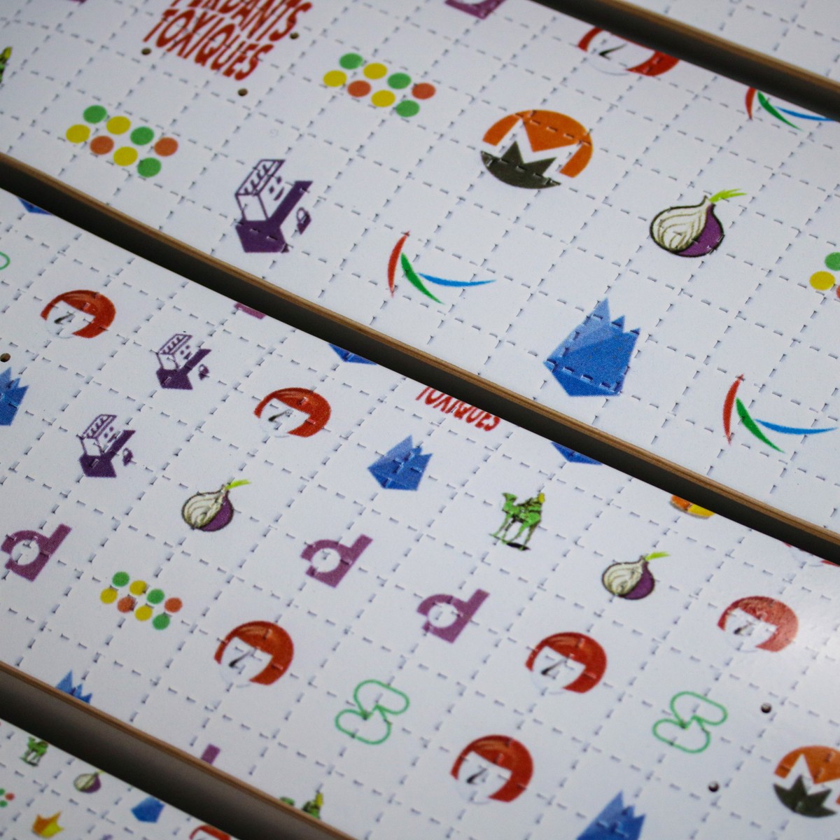 Printed on real blotter paper and scanned back at ultra high resolution allows for beautifully realistic looks on each skateboard.