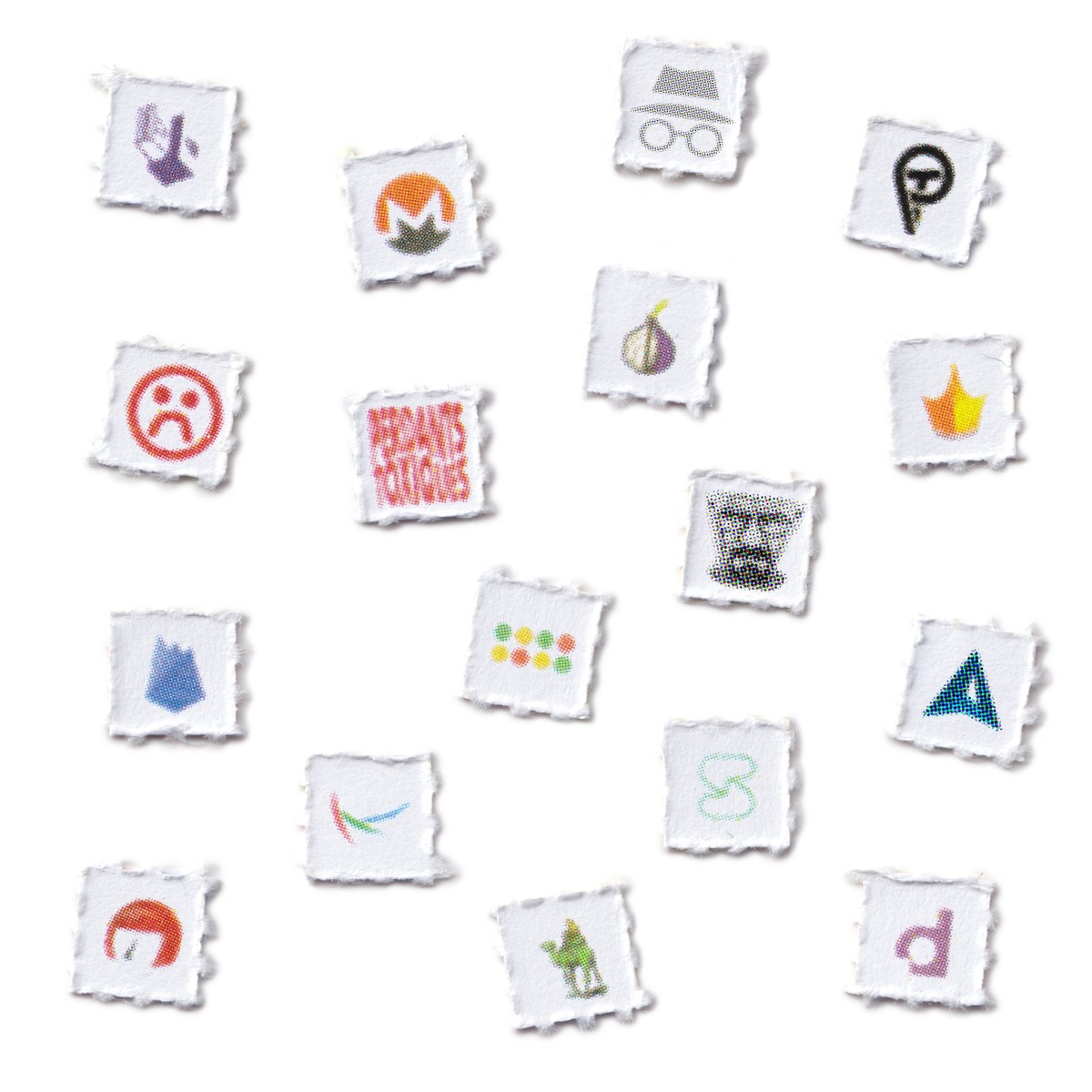 A fascination with the deep web, a somewhat hidden world in the internet, lasting for over a decade. Logos and iconography of tools, active markets and forums and iconic fallen heroes, mixed with a tiny bit of branding.